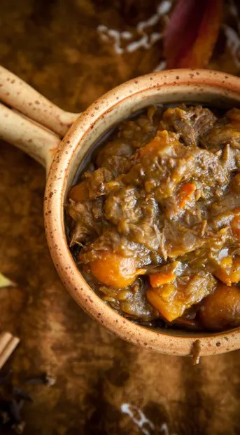 - Aggiungete le carote e lasciate cuocere per un'altra mezz'ora prima di aggiungere la zucca. Cuocere a fuoco lento per un'altra mezz'ora e controllare se la carne è tenera e la zucca ben cotta.