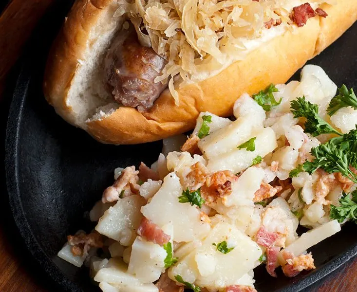 È ora di accendere la griglia! Questo delizioso duo di marmocchi alla birra e insalata di patate alla tedesca combina due classici perfetti per le grigliate estive o per le partite di calcio autunnali.