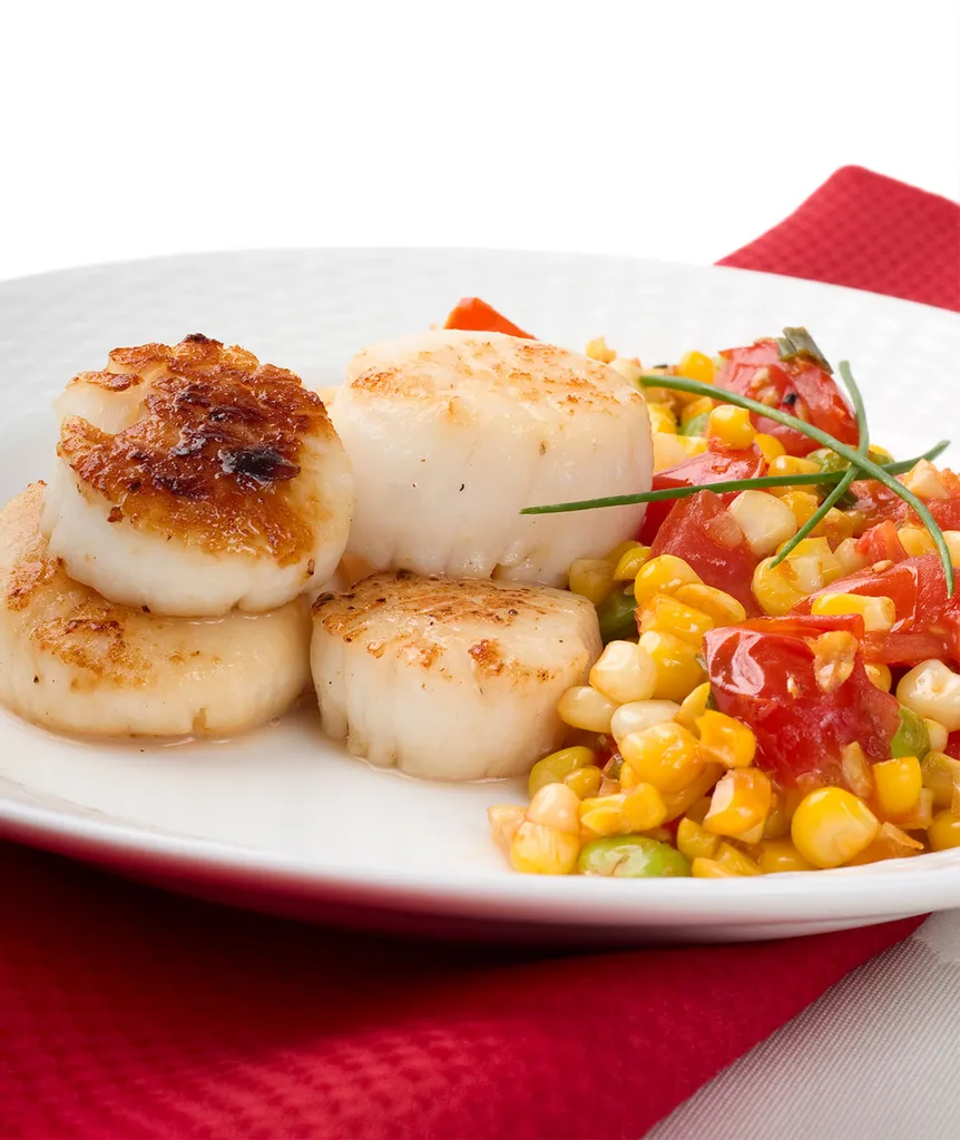 Questa ricetta di capesante su una goccia di soccotash con salsa di stagione non è leggera e rinfrescante, facile da preparare e i sapori si fondono magnificamente.