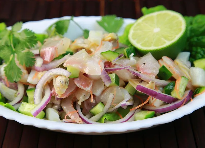 Lo chef residente dello chef Robert Legget per la rivista Philly Beer Scene condivide la sua ricetta per il ceviche IPA di spigola selvatica a strisce con pompelmo rosa, vinaigrette IPA Route 113 di Sly Fox Brewing Co. gastrique habanero tobiko e won croccanti.